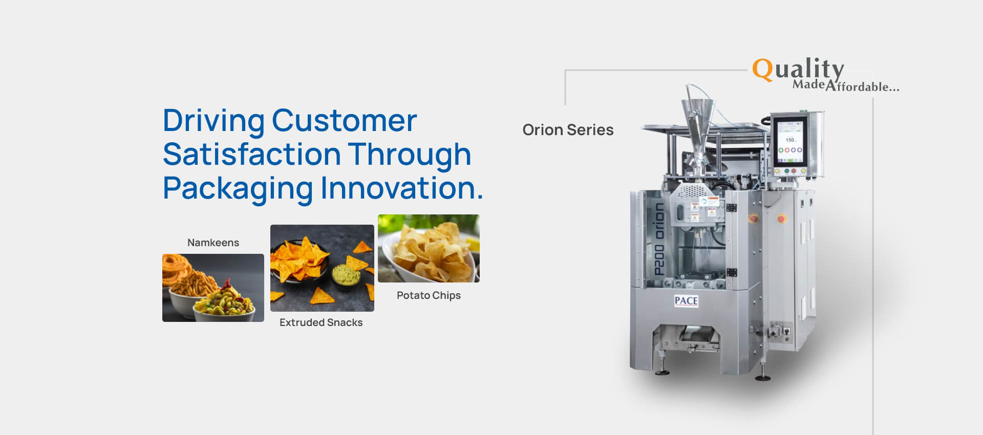 Find our moreWith state-of-the-art in-house R&D, globally benchmarked quality standards, and precision-engineered VFFS machines, Pace Packaging Machines delivers cutting-edge solutions trusted by leading brands worldwide.